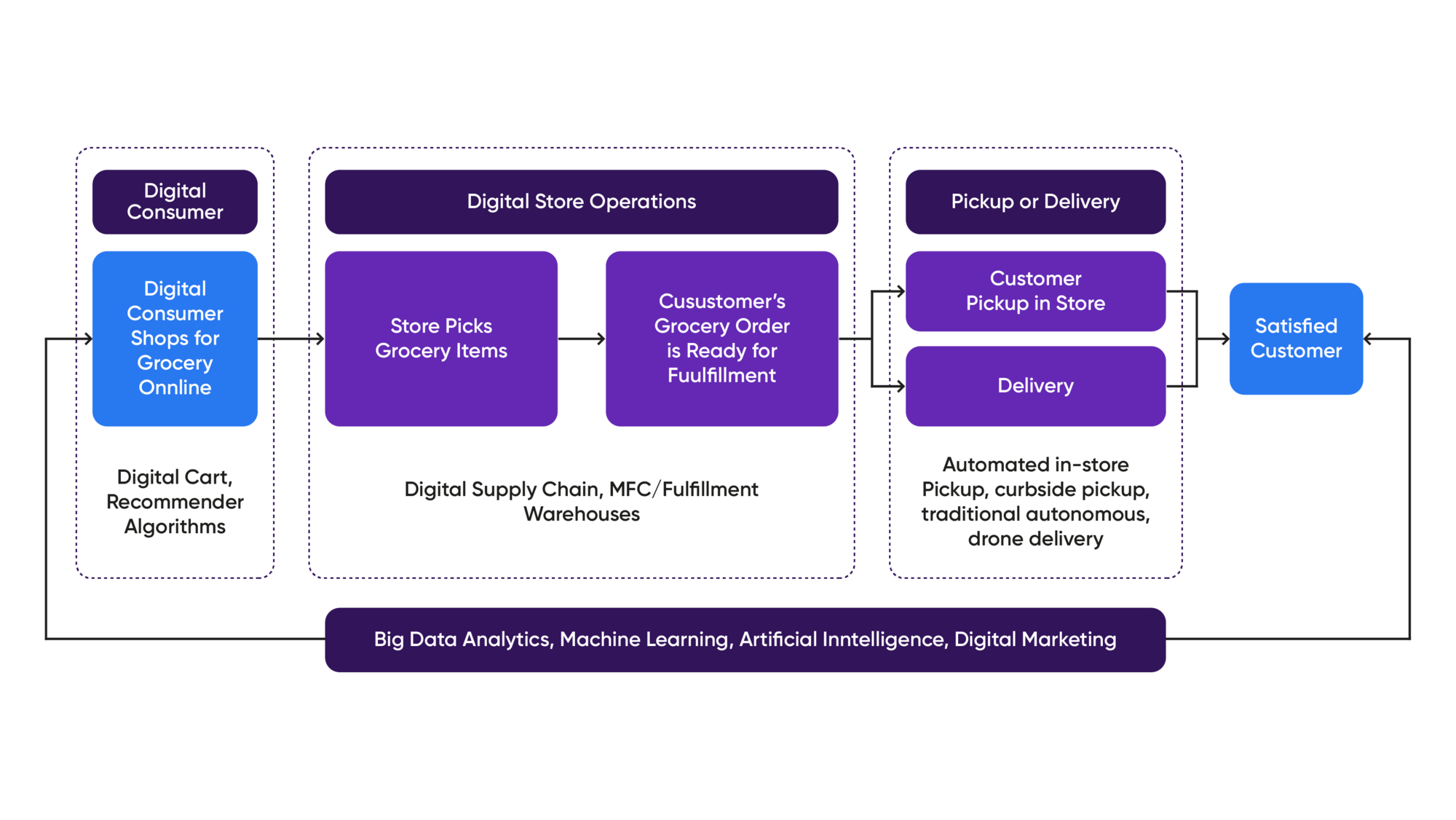 The shift to digital buying was already happening pre-Covid era. The pandemic has accelerated the transition to digital. Global retail sales declined in 2020, but the e-commerce adoption rate has increased onwards. Now consumers demand the choice of both online and offline experiences. Grocery retailers cannot simply ignore this trend. They must think about transforming their purchase channels (web, mobile, and social) by keeping their consumers at the core.