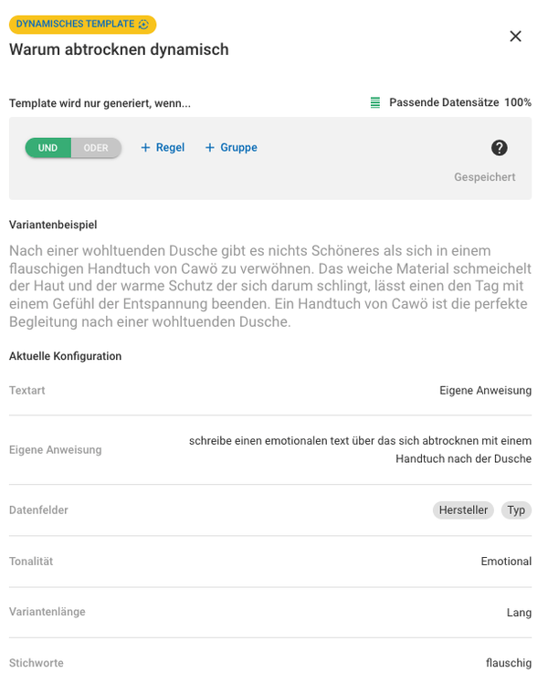 The rules defined by Christoph and the dynamic content elements ensured that newly generated texts, even for the same product, were unique.