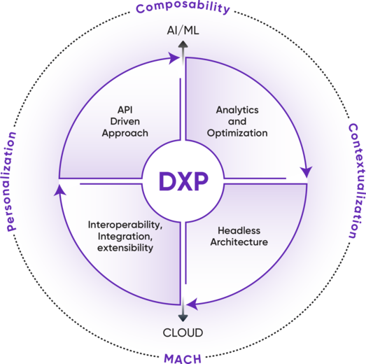 - Phase 3: Emergence of True DXPs- With integration and interoperability becoming paramount, vendors started working towards simplifying (while modernizing) their technology and interoperability. And deeper integration of platforms (rather than mere assimilation of components from multiple vendors) became the backbone of a true DXP. As a result, large vendors began to offer pre-integrated product portfolios, while small vendors concentrated on creating pre-integrating their smaller portfolios with cloud.